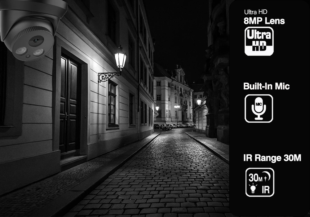 Водонепроницаемая IP-камера видеонаблюдения, 8 Мп, H.265 + ИК, 30 м