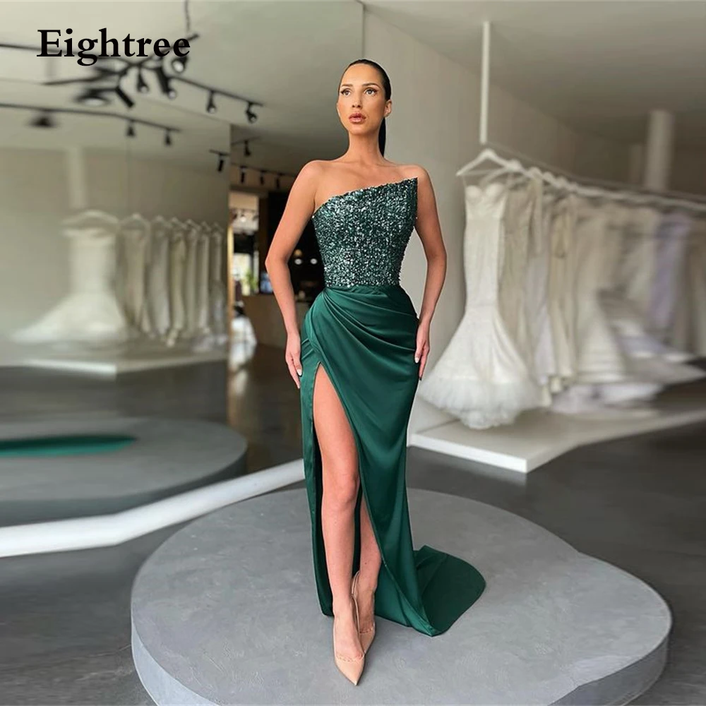 Сверкающее Королевское Зеленое Длинное Платье С Боковым Разрезом для клуба выпускного вечера платье без рукавов блестящие вечерние платья для вечеринки