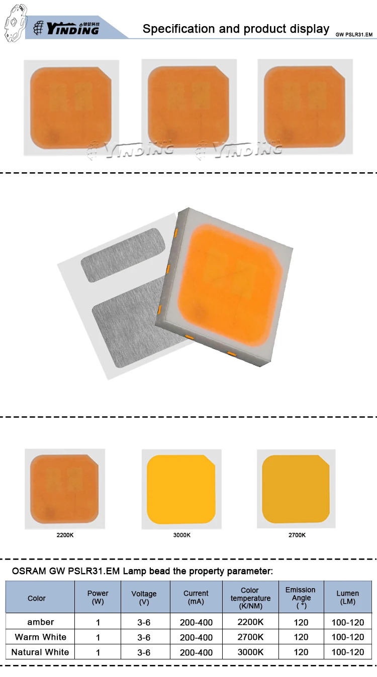 Светодиодные светильники DURIS GW PSLR31.EM, 1 Вт, высокомощный чип 220030002700, Янтарныйтеплый белый, натуральный белый, 3030, 10 шт.