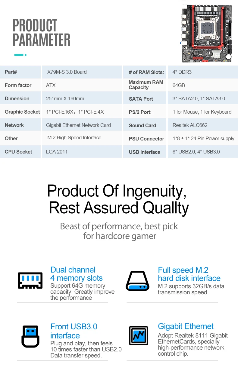 100% качество продукции + 100% тестирование перед отправкойПоддержка памяти сервера REG ECC.Поддержка M.2 NVME SSD.Высокая совместимость для более высокого опыта.Все твердые конденсаторы, тонкая работа, профессиональная стабильность.Гнездо питания имеет 8-pin, 24-pin разъем питания.