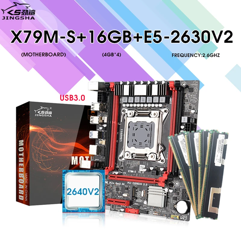 Комплект материнской платы Jingsha X79 с процессором Xeon LGA2011 E5 2630 V2 4x4 ГБ = 16 Гб 1600 МГц DDR3 память ECC REG