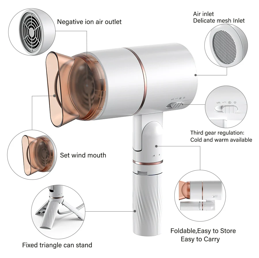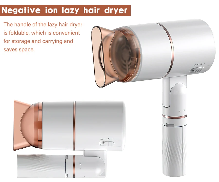 Регулируемый фен Alileader с отрицательными ионами для ленивых волос, профессиональный Быстросохнущий фен для дома, складной для удобного хранения, подарок для девушек