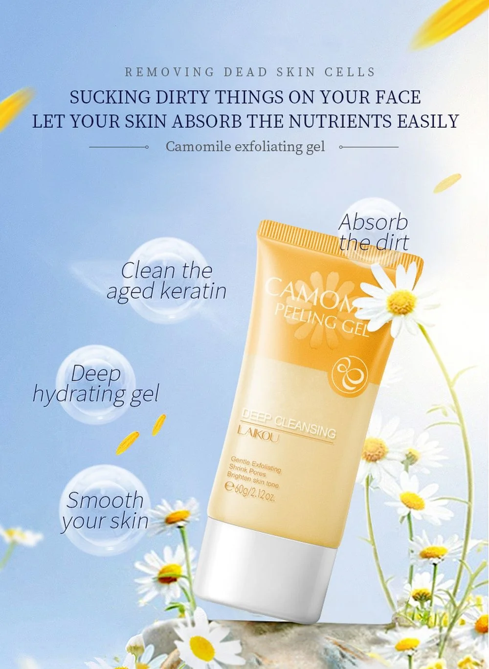 LAIKOU ромашка глубокое очищение лица Отшелушивающий отбеливающий гель скраб нежный очищает пор увлажняющий уход за лицом 60 г