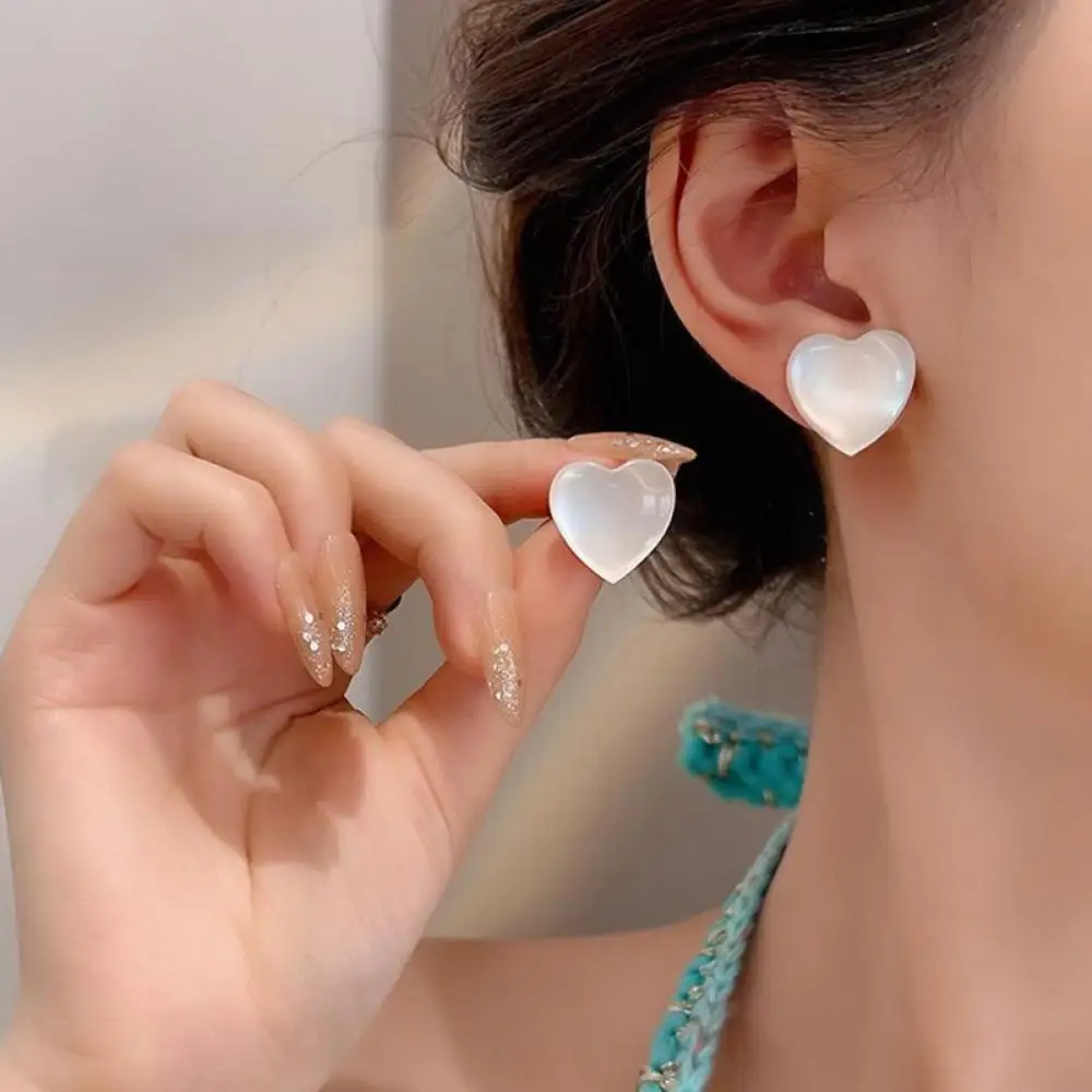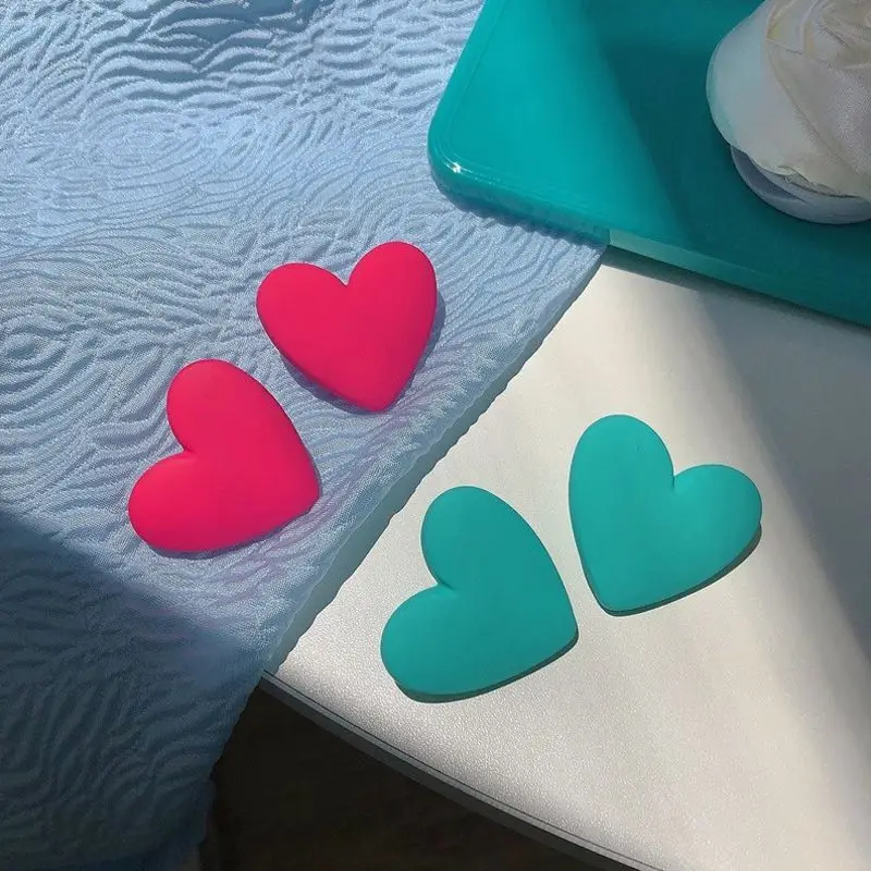 Женские серьги-гвоздики в Корейском стиле, Милые акриловые серьги розового персикового цвета в форме сердца, подарок на день Святого Валентина