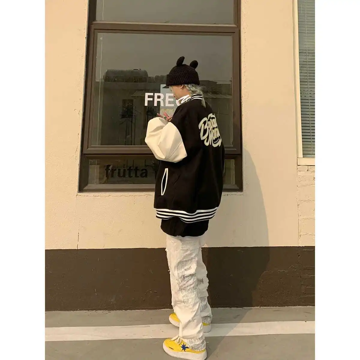 Женская бейсбольная форма в стиле Харадзюку, универсальная Свободная куртка с принтом и V-образным вырезом, куртка большого размера, 2021