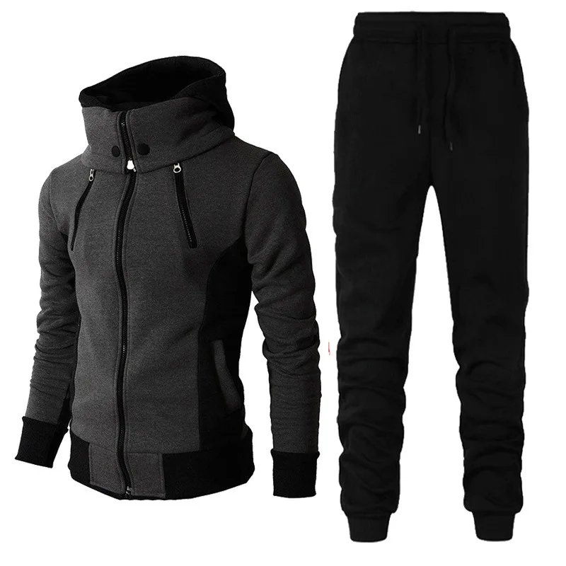 Новый осенне-зимний мужской Модный повседневный теплый костюм из 2 предметов, пуловер с капюшоном и высоким воротником, теплая флисовая Спортивная одежда на двойной молнии