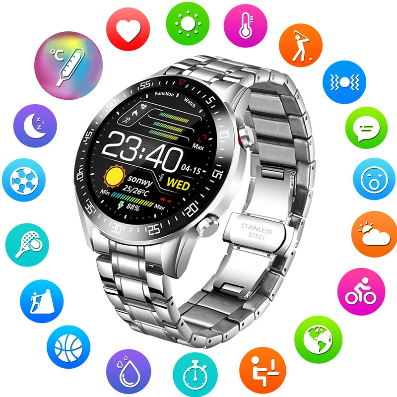 Роскошные бизнес Смарт-часы для мужчин с сенсорным экраном стальной браслет сердечного ритма кровяное давление монитор здоровья умные часы 2021