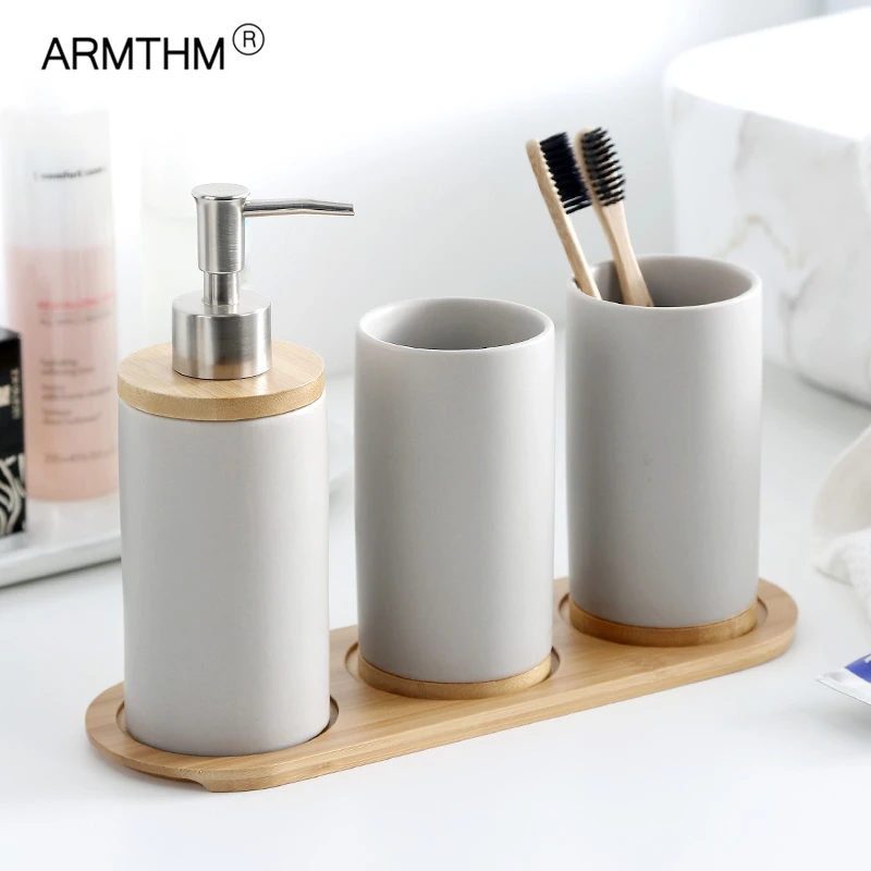 Керамическая чашка для мытья, Бамбуковая деталь, набор аксессуаров для ванной комнаты, фотоемкость для жидкости
