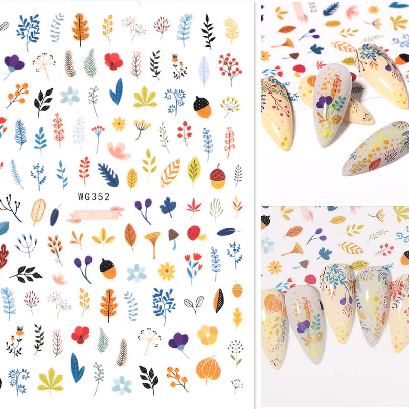 1 лист Подвески Цветы кленовый лист 3D наклейки для ногтей Летняя тема Геометрические линии дизайн ногтей наклейки слайдеры Маникюр для украшения