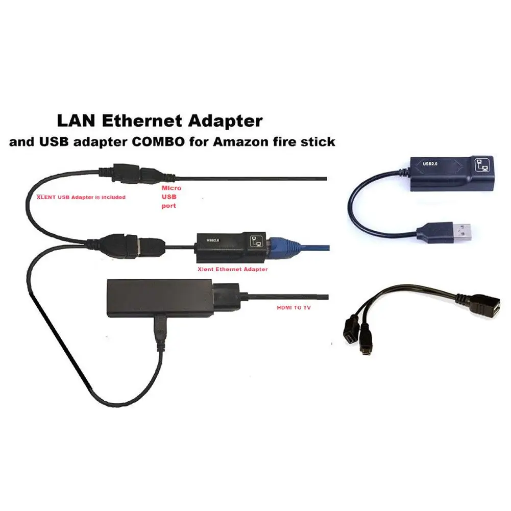 LAN Ethernet адаптер для FIRE TV 3 или STICK GEN 2 или 2 остановить буферизацию Mirco OTG USB 2,0 адаптер комбинированный кабель Прямая поставка