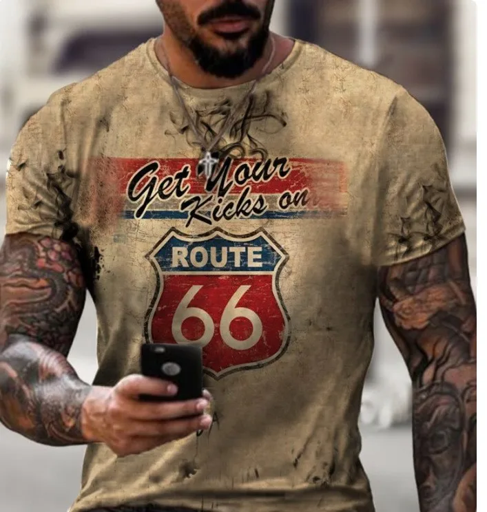 Футболка мужская с надписью Route 66, повседневная спортивная одежд...