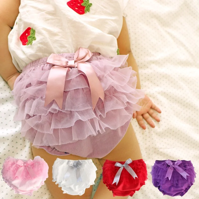 Шорты для девочек, хлопковые трусики, повседневные кружевные штаны с хлебом, мягкое нижнее белье для малышей, Симпатичные трусики с оборками и бантом для новорожденных девочек, нижнее белье