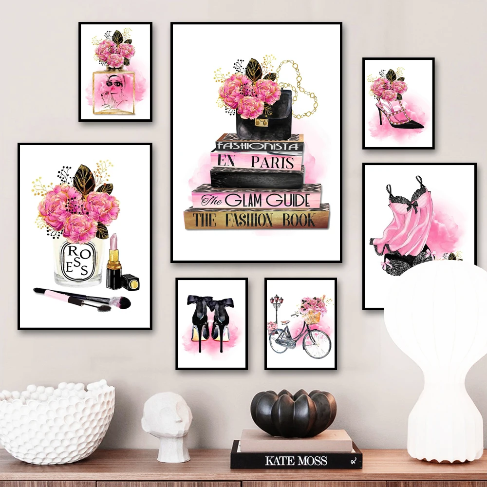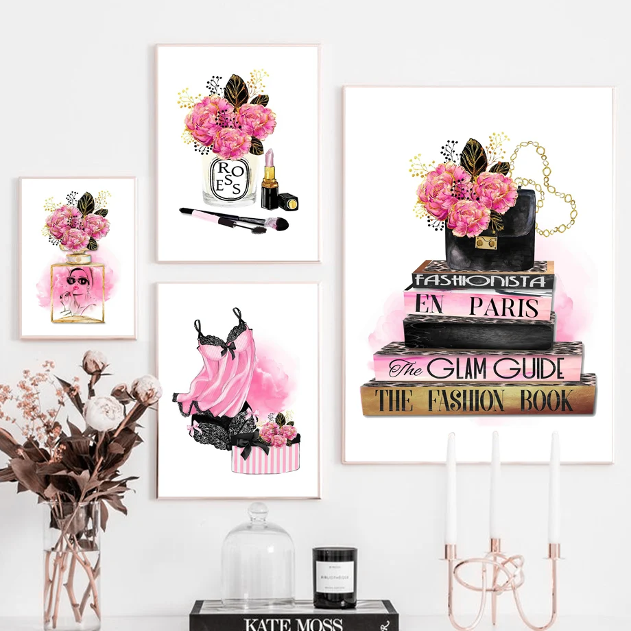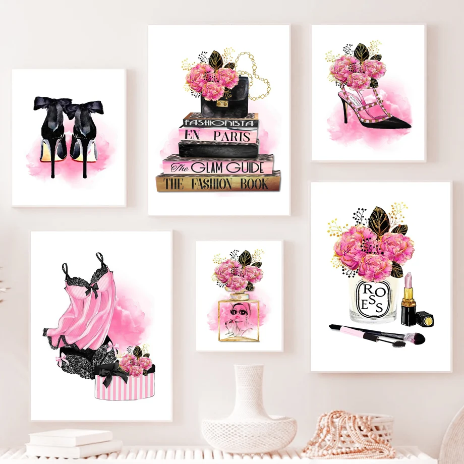 Цветок парфюм шампанское помада каблук модный макияж Искусство Холс...