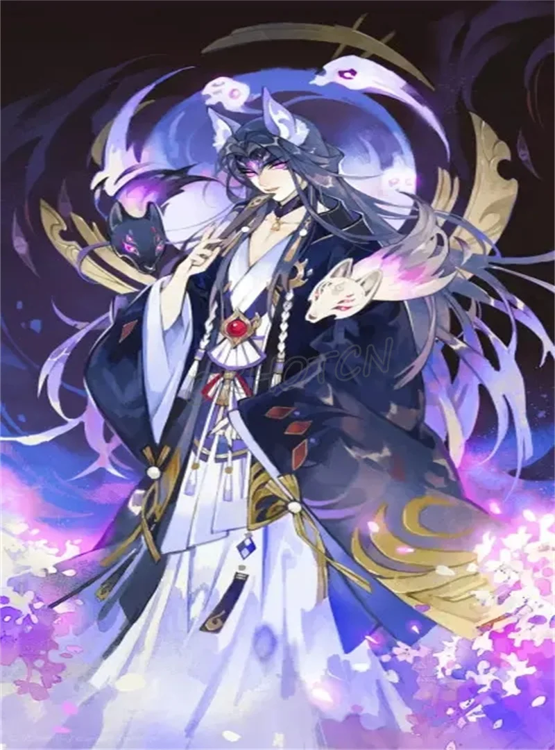 Алмазная живопись, мультяшная девять хвостов, лиса, полный квадрат,...