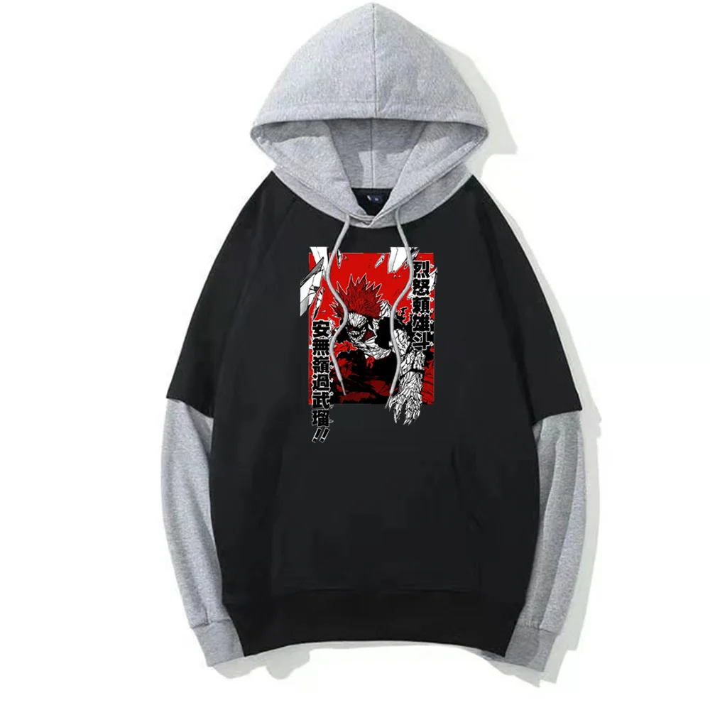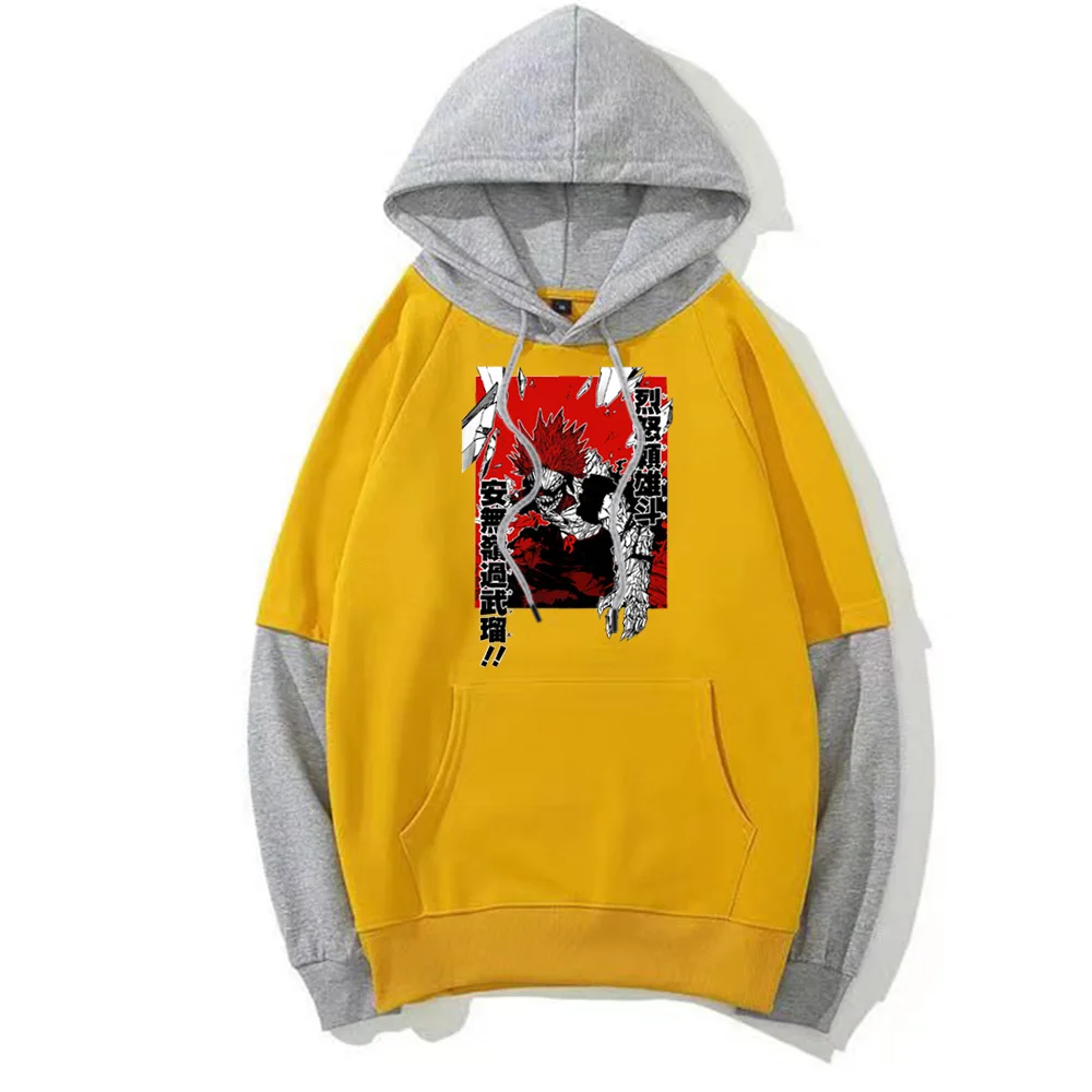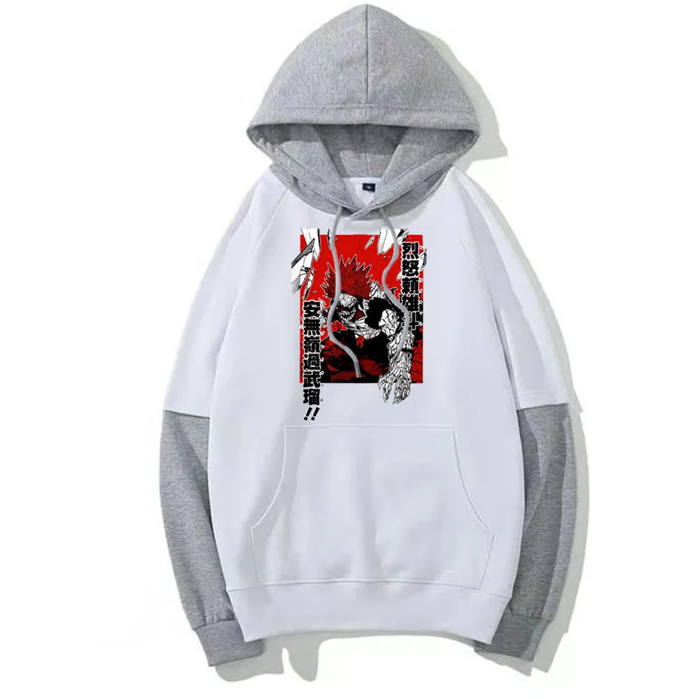 Толстовка унисекс с японским аниме Моя геройская Академия, Свитшот оверсайз с рукавами-фонариками, одежда для улицы Kirishima Eijiro