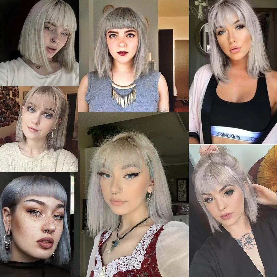 HOUYAN девушка серебряная челка окрашенная короткая челка Боб челка...