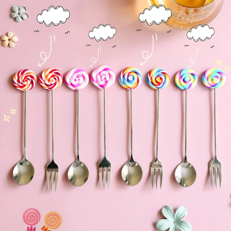 Вилка-пончик в виде леденца, ложка из нержавеющей стали 304, детские столовые приборы, столовые приборы, аксессуары