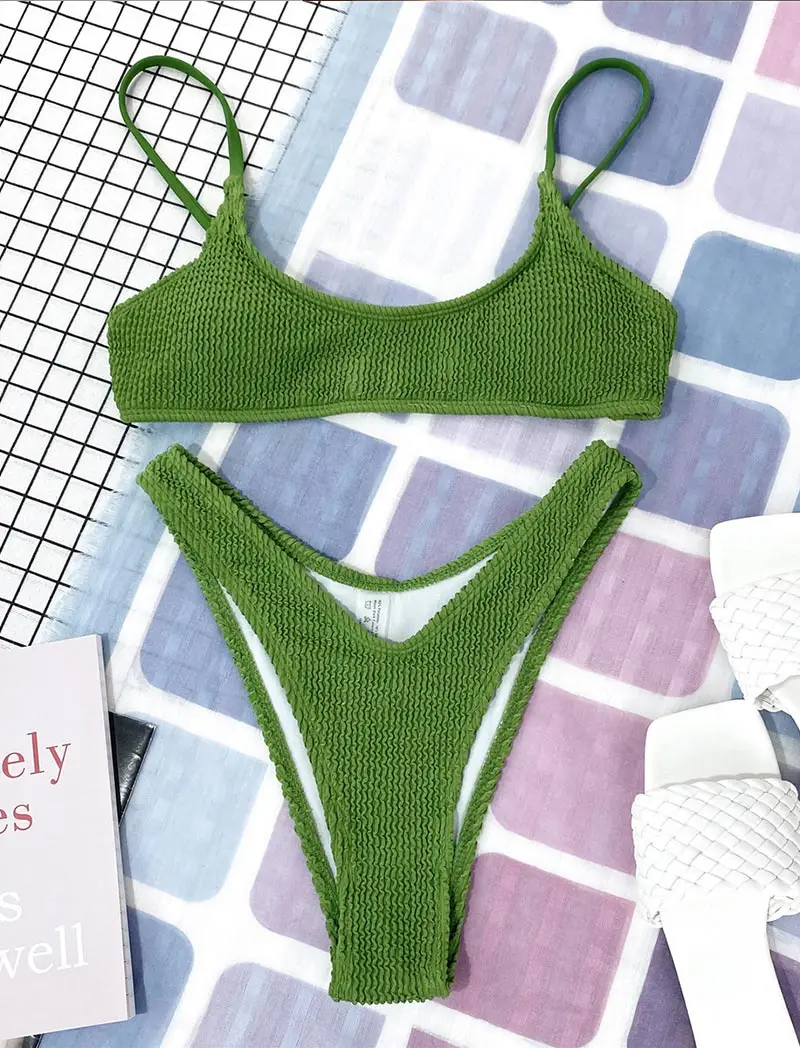 Костюм-двойка, бикини, однотонный купальник, стринги с высоким выре...