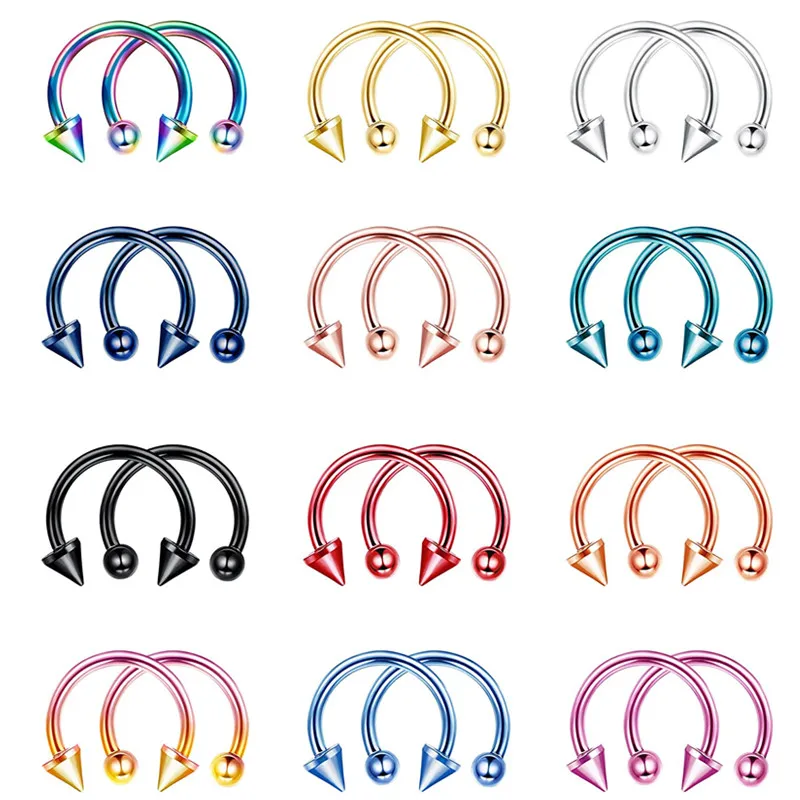 Кольцо для пирсинга носа из нержавеющей стали, подкова, шип, перего...