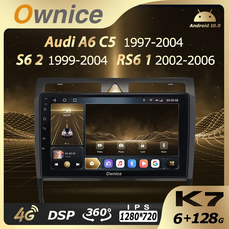 Автомагнитола K7 Ownice, стерео-система на Android 10,0, 6 ГБ, 128 ГБ, с панорамой 360, для Audi A6 C5 S6 2 RS6 1, с GPS, DSP 8 ядер, 1280*720, 4G, LTE