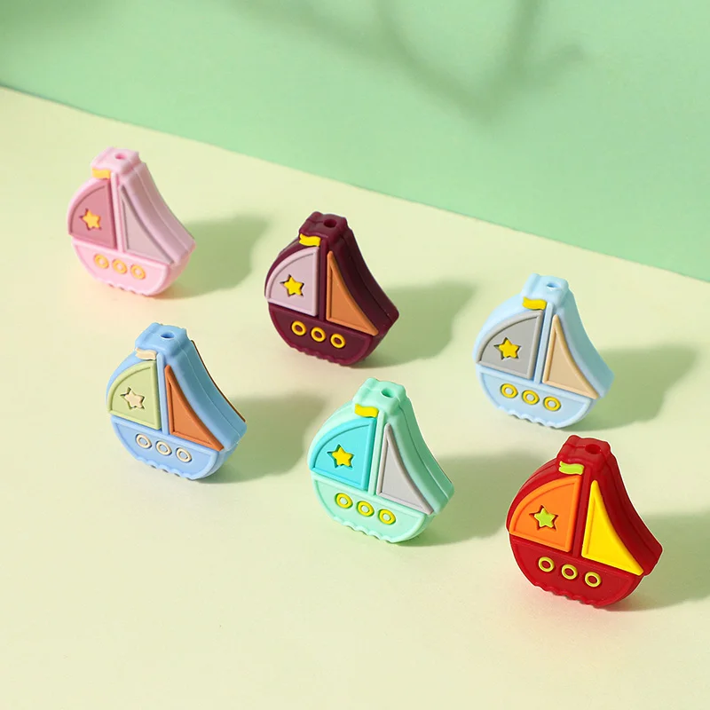 TYRY.HU Мультяшные силиконовые бусины для прорезывания зубов в виде парусника, мини-Корабль из пищевого силикона, силиконовые панды, сделай сам, игрушки для прорезывания зубов для детей, подарок