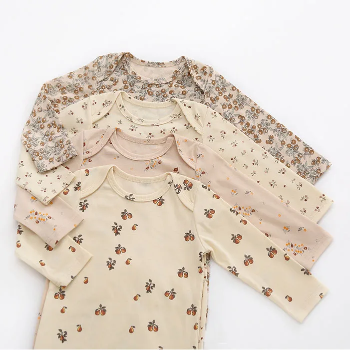 Комбинезон с длинными рукавами для новорожденных; Брендовый комбинезон из органического хлопка для маленьких мальчиков и девочек с цветочным рисунком вишни; Весенне-осенняя одежда для новорожденных
