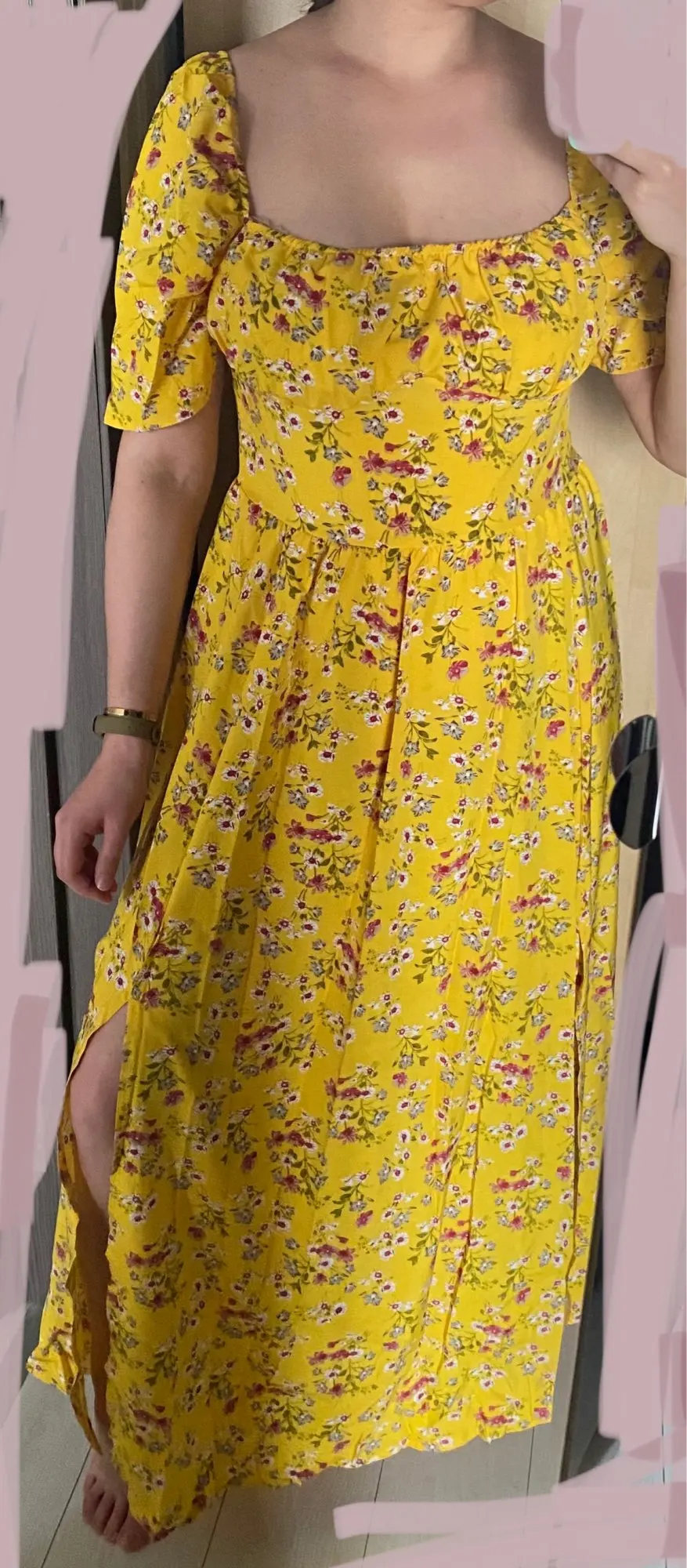 Хорошее платье ! Качество достойное. Не просвечивает. Единственное на свои параметры 106-85-112, рост 174 взяла 2хl - он сидит очень свободно. Там есть запас ещё на см 7-10. Пришло быстро. Думаю лучше брать цвет платья бело-голубой , желтый выглядит не очень на мне. Но качество супер!
