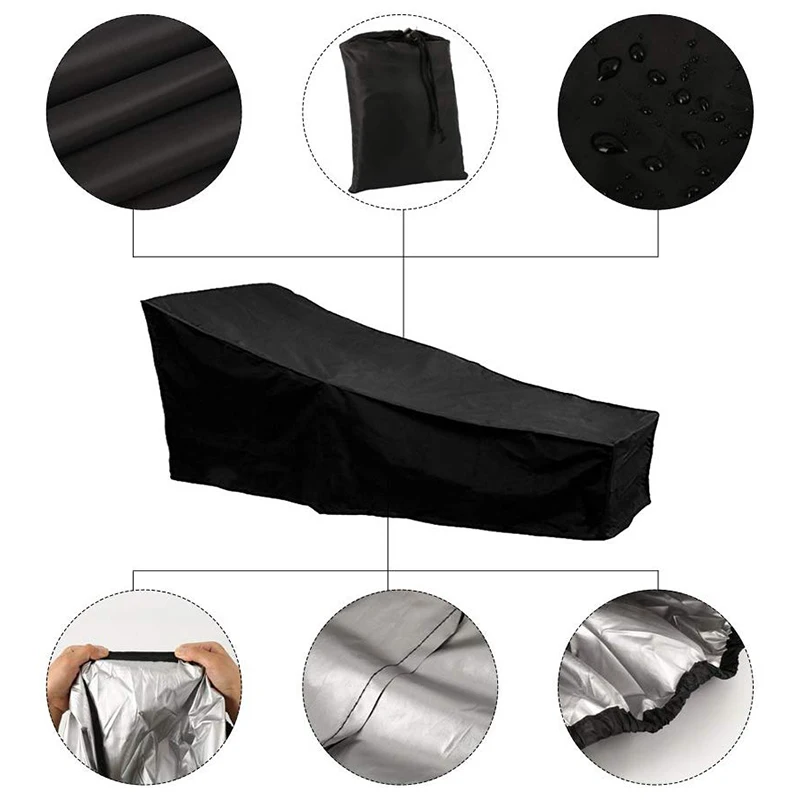 Посылка включает в себя:1 х чехол для автомобиля1 х сумка для храненияОсобенности:Этот уличный чехол для кресла для отдыха 82 "x 30" x 16 "/31". Предназначен для 82 "L x 30" W x 31 "H/16" H шезлонг.Улучшенная крышка шезлонга: Изготовлен из усовершенствованной прочной полиэфирной ткани с водонепроницаемым покрытием, не хлипкий, выдерживает дождь, снег, сохраняет ваш шезлонг сухим и безопасным.С дополнительным УФ-стабилизированным покрытием, чтобы защитить чехол для кресла для отдыха от выцветания и трещин, оставайтесь таким же хорошим, как и новый.Чехол-шезлонг имеет регулируемый шнурок на нижней части для плотного прилегания против сильного ветра.Чехол для сада в черном цвете также легко чистится и устойчив к пятнам.Характеристики:Материал: Улучшенная Прочная полиэфирная ткань высокой плотности + двойные Прошитые швы для дополнительной прочностиКрышка Размеры: 208x76x4 1/79 см (82 "x 30" x 16 "/31")Цвет: черный, кофейный, бежевый, серыйПримечание:1. Из-за разницы между различными мониторами изображение может не отражать фактический цвет изделия. Мы гарантируем, что модель реального изделия не отличается от представленной на фото.2. Из-за ручного измерения и различных методов измерения, пожалуйста, допускайте отклонение на 1-3 см. Спасибо!