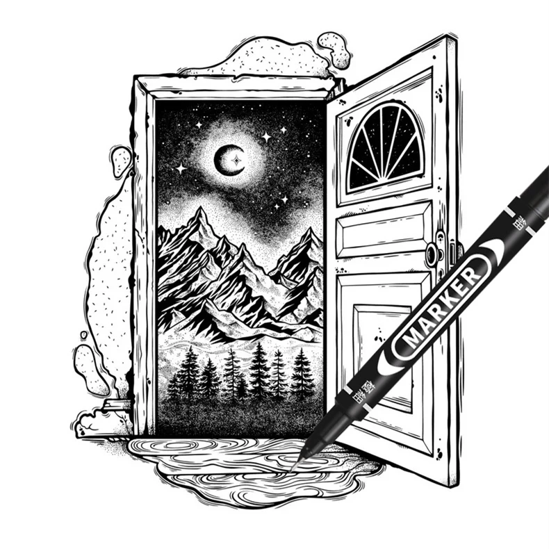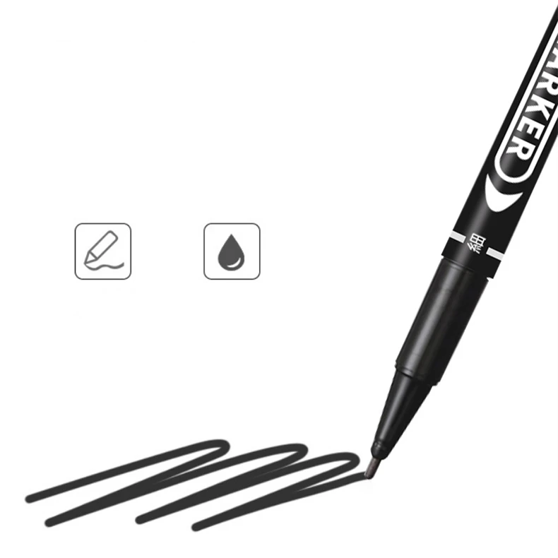 Оптовая продажа, двухсторонняя Перманентная маркерная ручка, тонкие водостойкие чернила с тонким перьевым наконечником, черные чернила 0,5 мм-1 мм, тонкий цвет