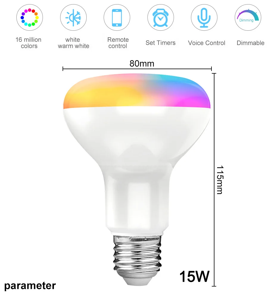 Энергосбережение и срок службы:15 Вт 1500лм умная лампа с базой E26/E27, эквивалентной 100 Вт традиционным лампам накаливания. Экономит до 80% энергии, дольше и экономит энергию.
