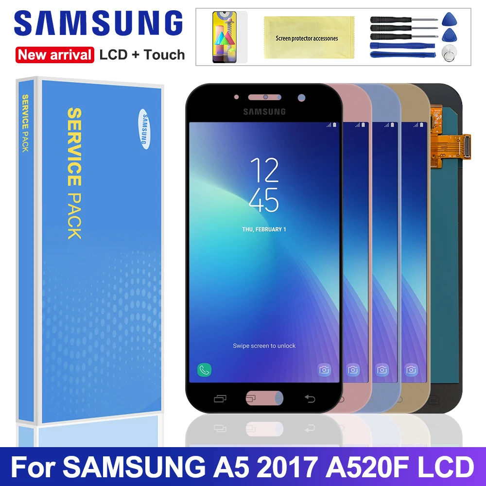 100% Оригинальный 5,2 ''дисплей для Samsung Galaxy A5 2017 A520 A520F A520M A520FD ЖК-дисплей с сенсорным экраном дигитайзер в сборе Замена