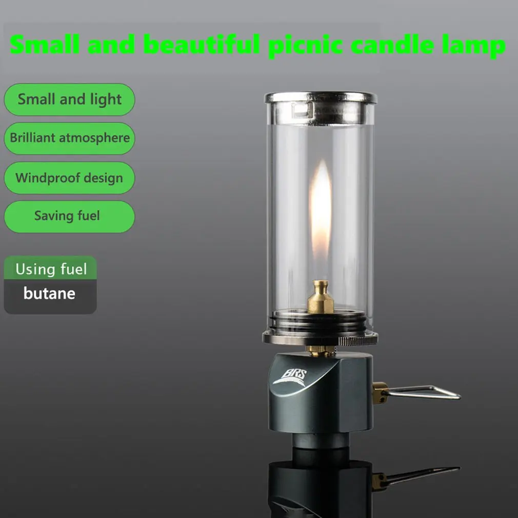 Уличная газовая горелка, миниатюсветильник ная ветрозащитная лампа-свеча для кемпинга, газовая горелка, уличное освещение для кемпинга, световое оборудование для палаток