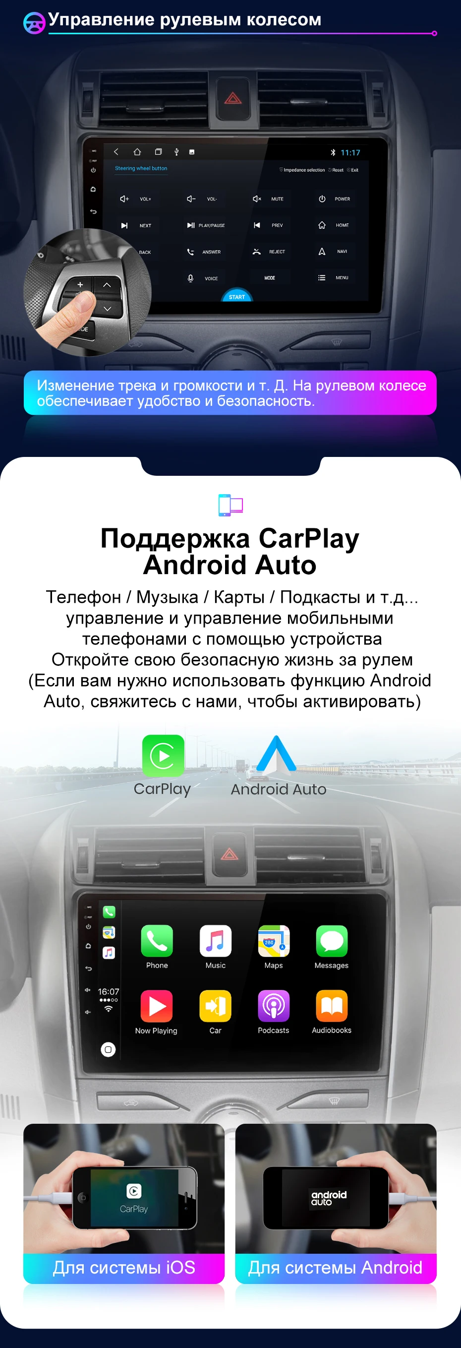 AWESAFE PX AI Голосовое Android auto CarPlay Автомагнитола Магнитола Мультимедиа автомобиля для (тойота королла E140 E150 2006 -2013 For Toyota Corolla E140 E150 GPS Android аудио трекер навигатор 2 DIN 2 дин Автомагн