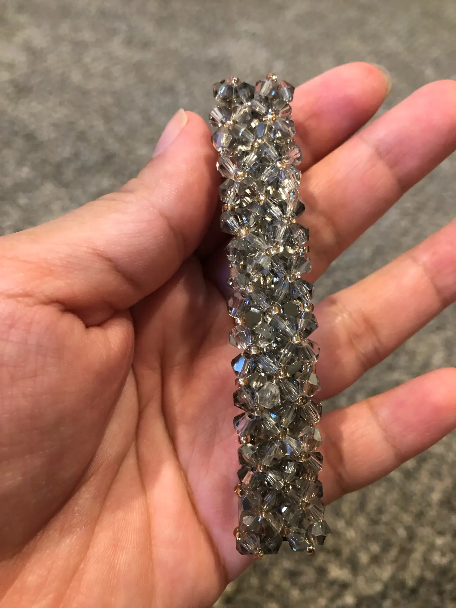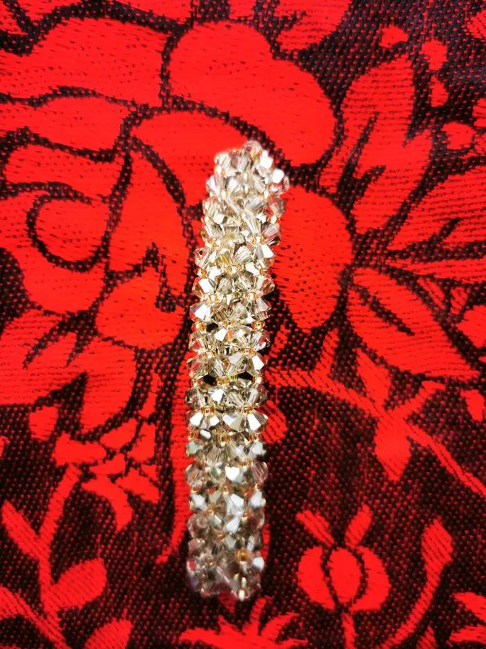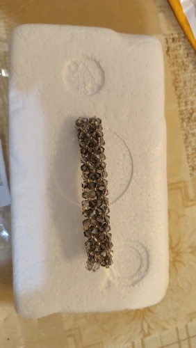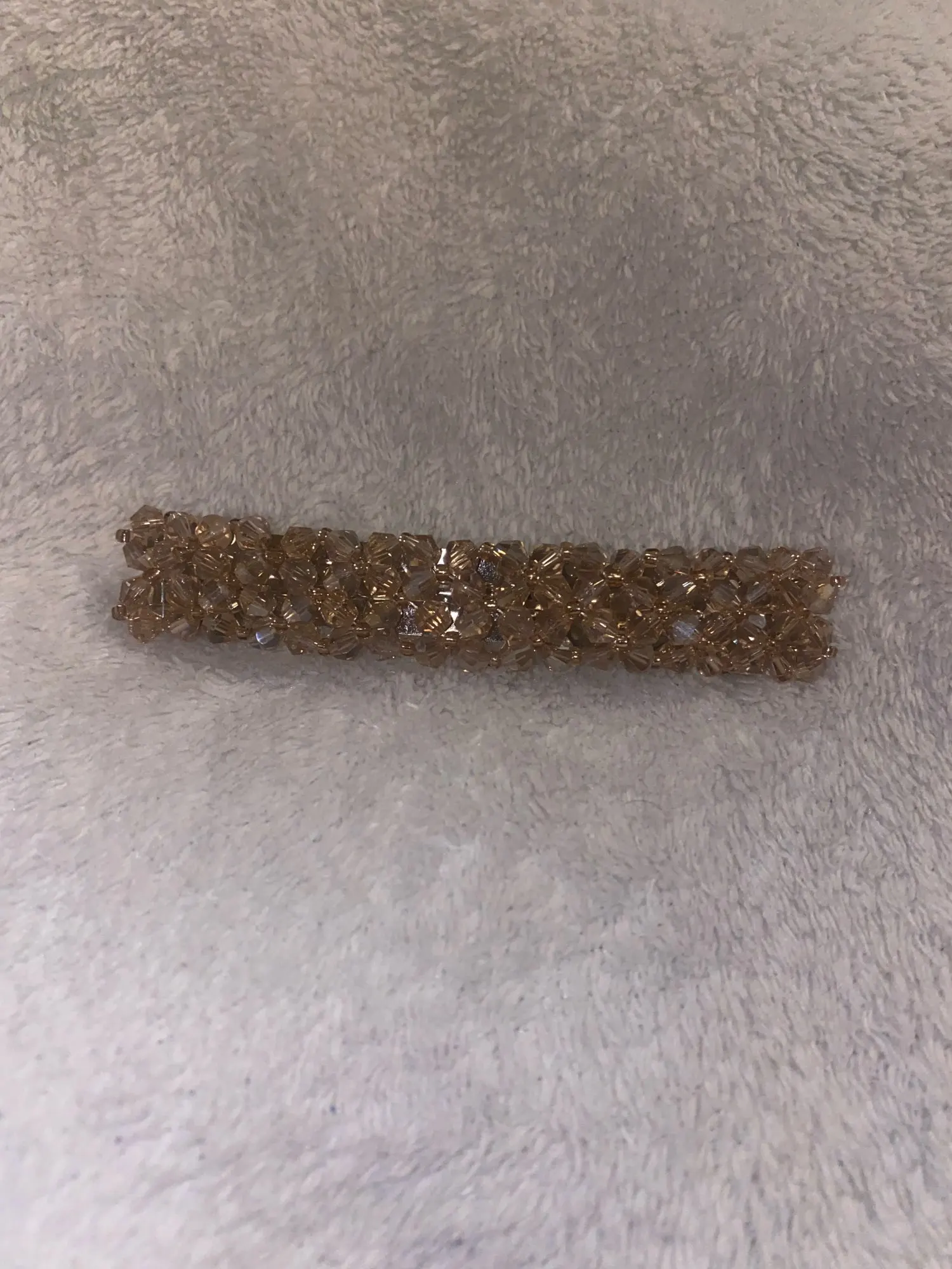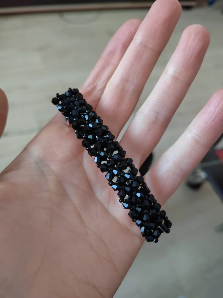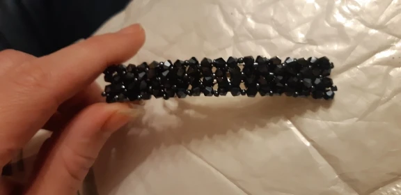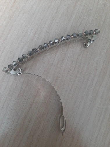 Заколка-бисерное плетение на леске. К основе прикреплена тоже леской. Выглядит мило и нежно. Продавец молодец. Заказ отправил быстро. Спасибо за это.