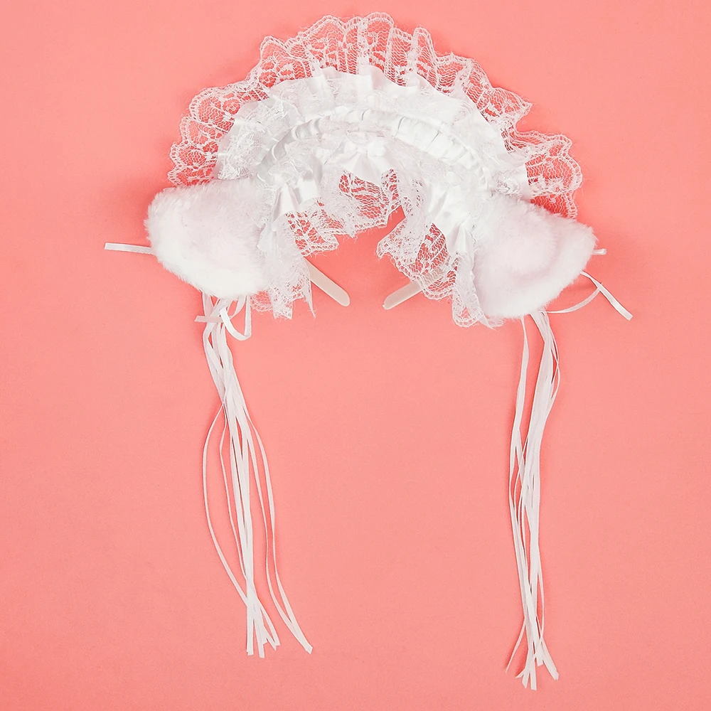 Милые кружевные головные уборы для косплея с кошачьими ушками Ленточные повязки для волос с бантом для женщин Лолита повязка на голову для девушек плюшевые кисточки колокольчик декоративные обручи для волос