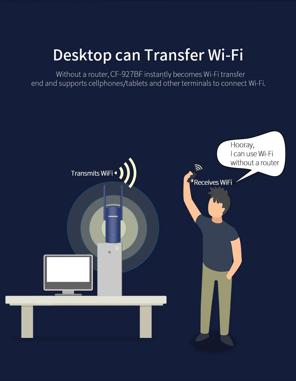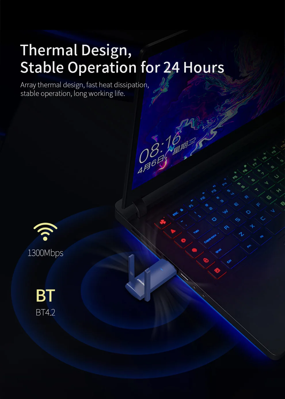 Он может подключать компьютер к bluetooth-гарнитурам/динамикам/мышкам/клавиатурам и т. Д., а также поддерживает настольный компьютер, беспроводной доступ в Интернет и совместное использование нескольких человек портативных функций Wi-Fi. Пользователи могут наслаждаться беспроводной свободой.