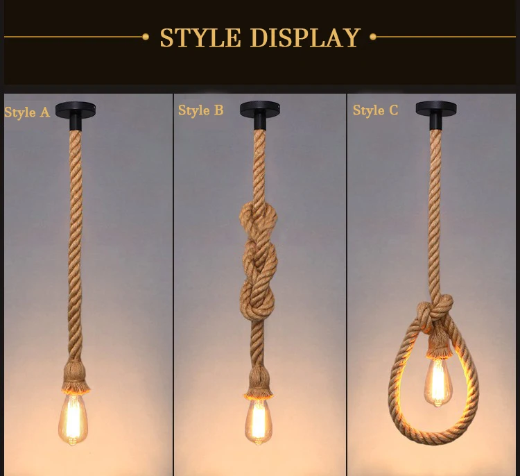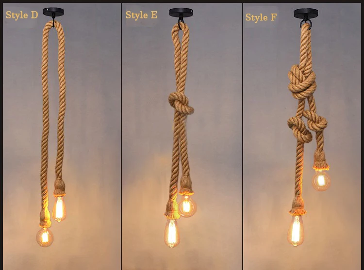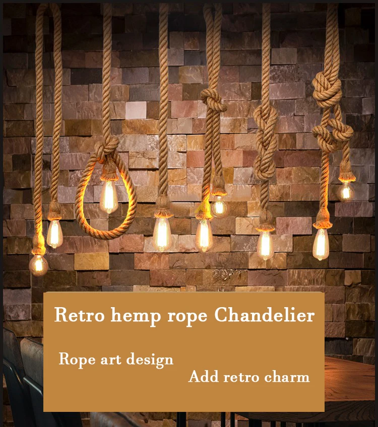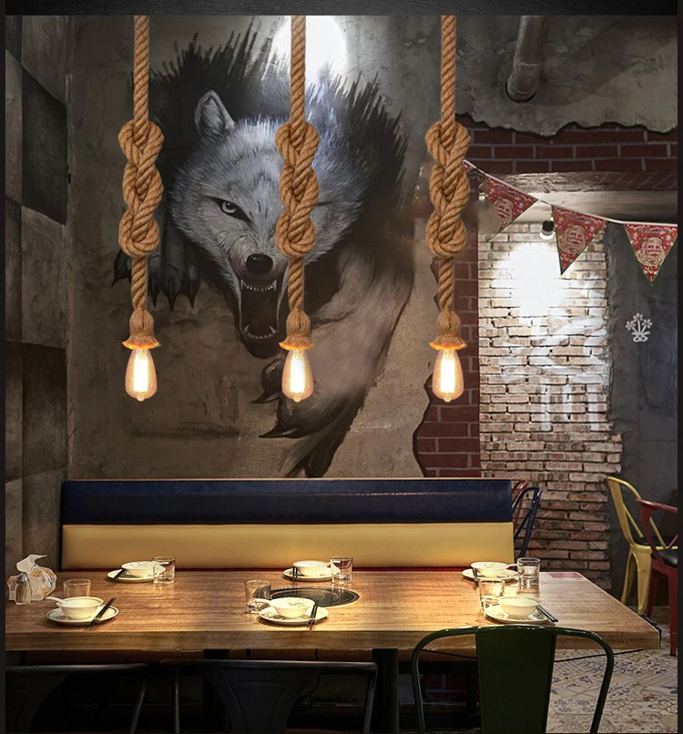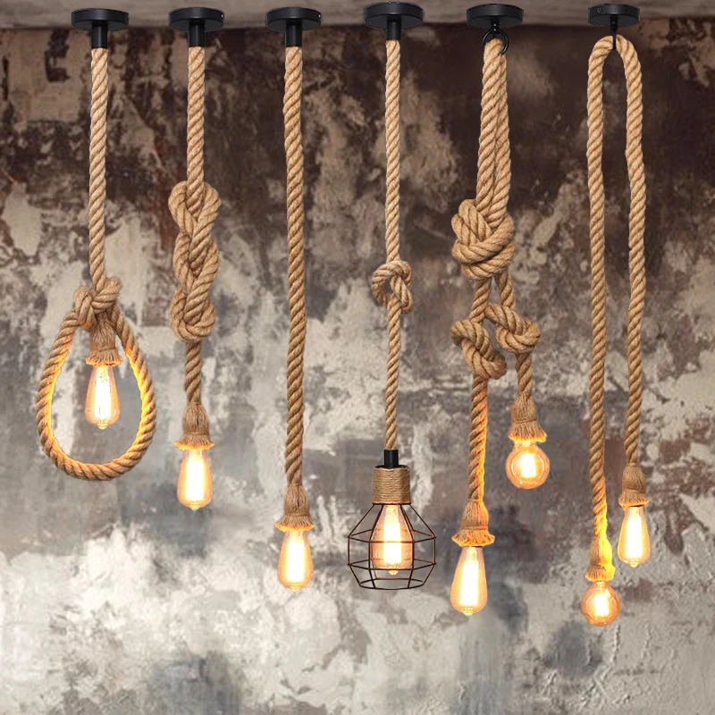Люстра из пеньковой веревки в стиле ретро, индивидуальная Лампа В индустриальном стиле с одной головкой и двойной головкой для бара, кофейни, магазина одежды