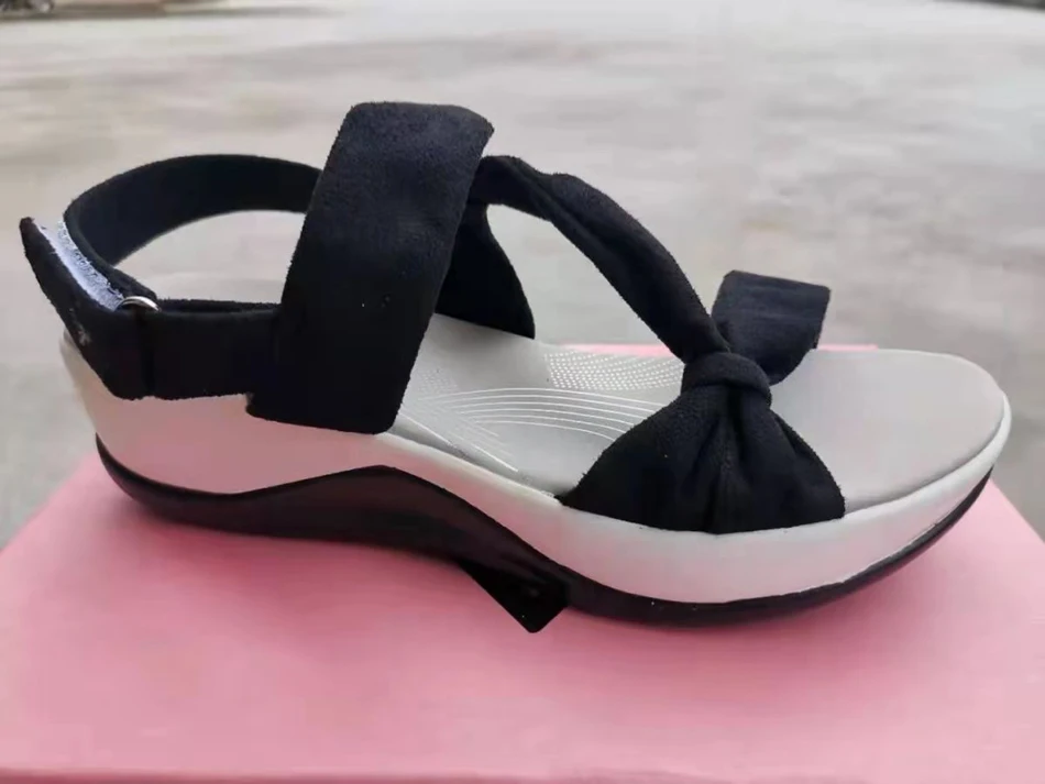 Сандалии женские с бантом, пляжная обувь, толстая подошва, пряжка, повседневные модные тапочки из чистого хлопка, лето