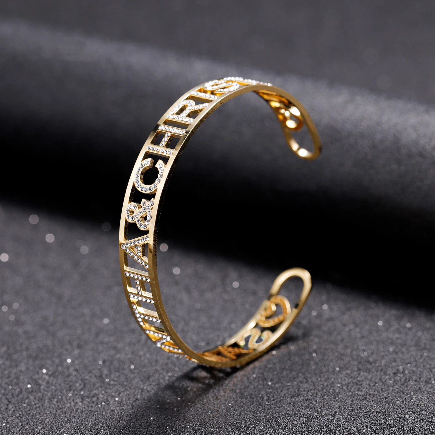 Браслет с именем на заказ, браслет со сверкающими буквами, персонализированные именные таблички, браслеты из нержавеющей стали, модные ювелирные изделия для женщин