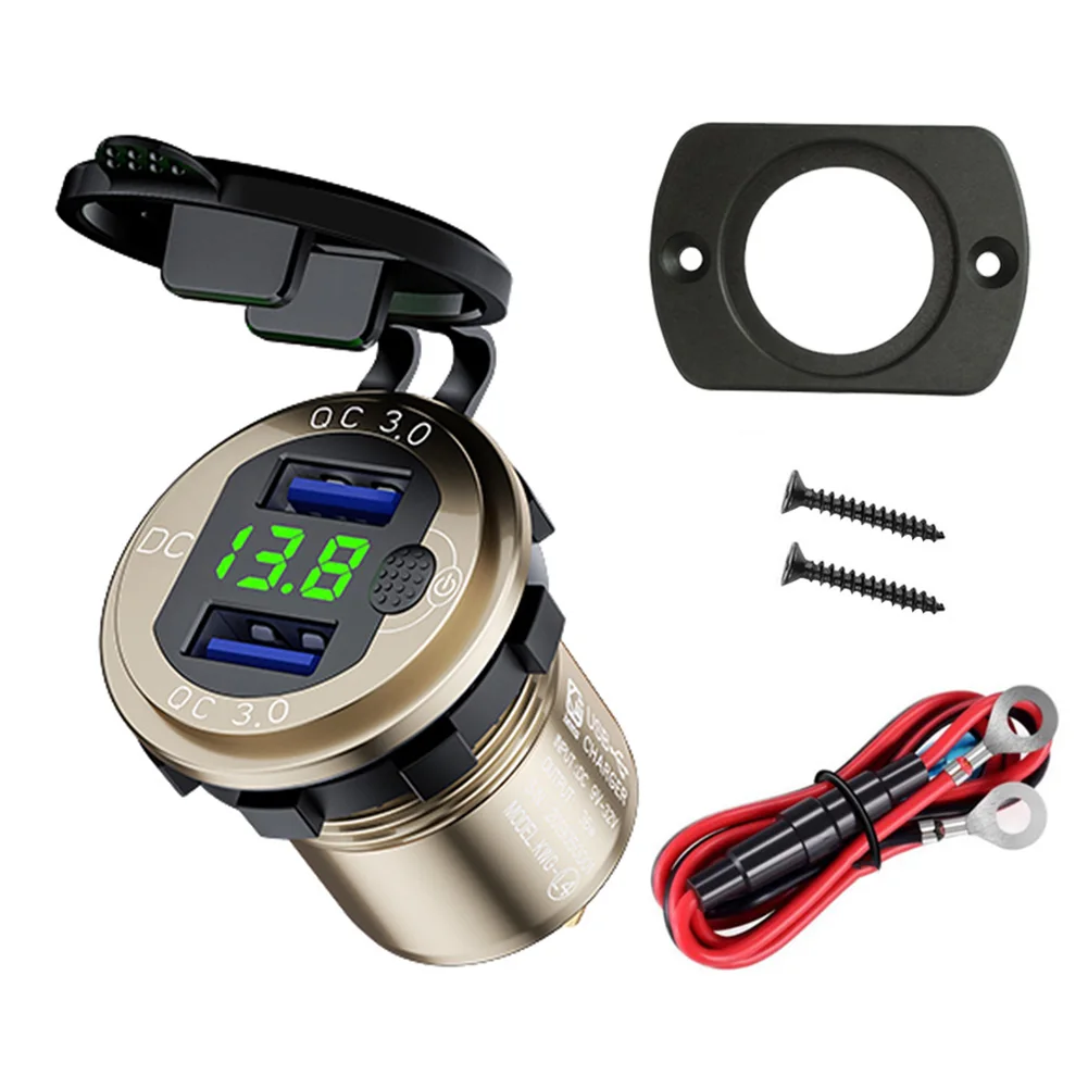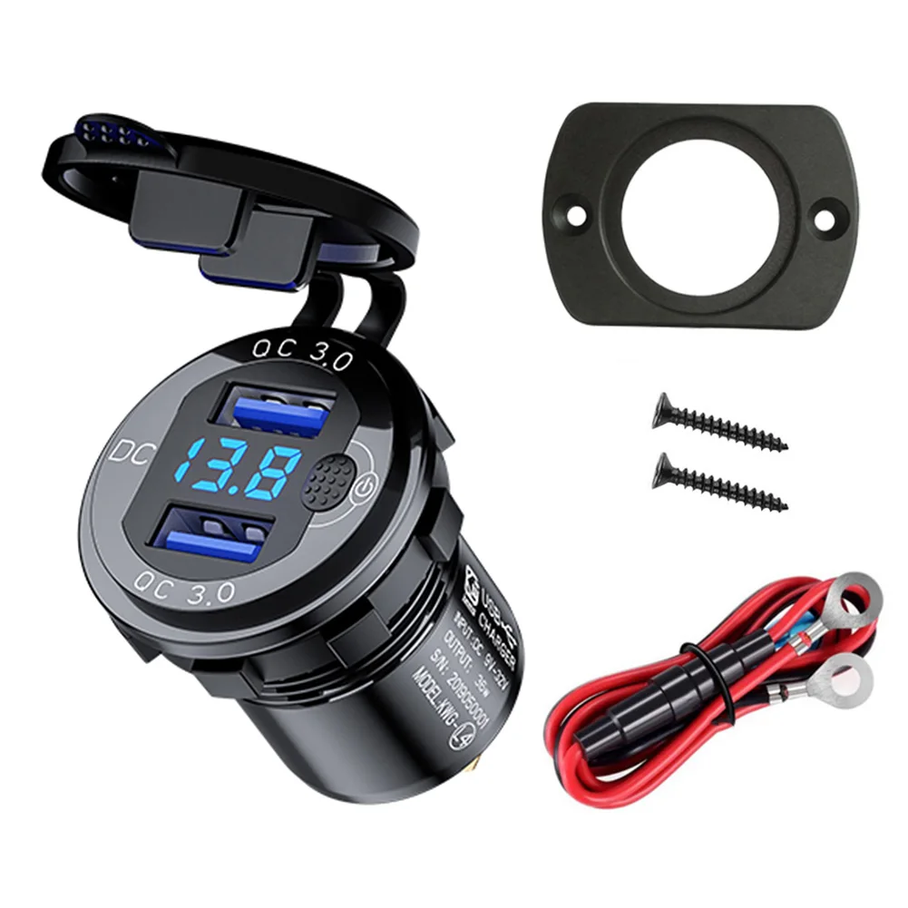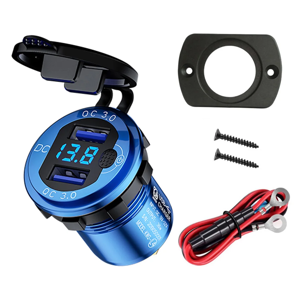 L4 зарядное устройство с двумя usb-разъемами, алюминиевая Быстрая зарядка 3,0 36 Вт, usb-розетка с вольтметром + переключатель + комплект проводов для автомобиля, лодки, морского мотоцикла, квадроцикла, грузовика 12-24 В