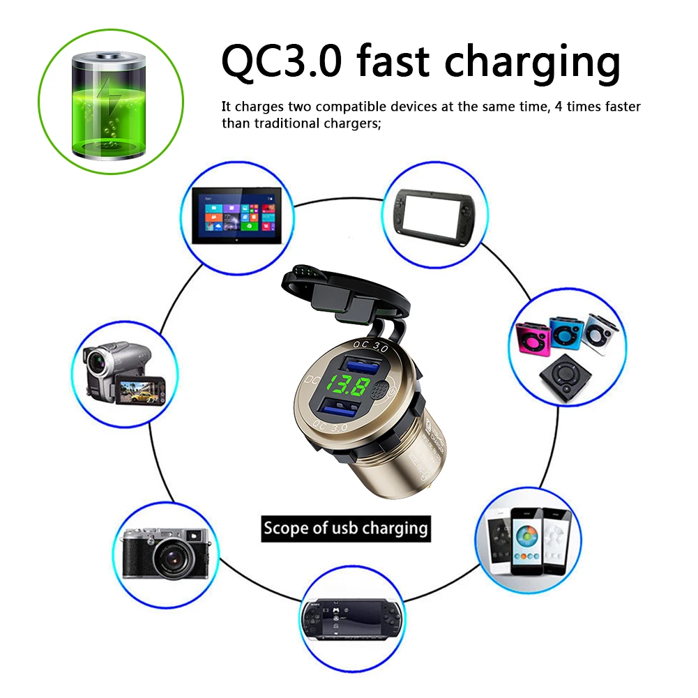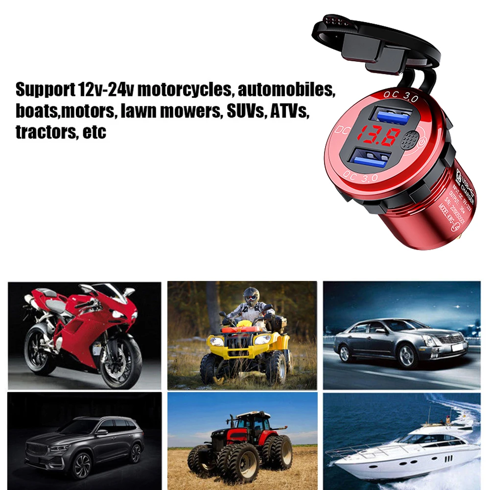 12V 24V Алюминий Водонепроницаемый двойной QC3.0 для быстрой зарядк...