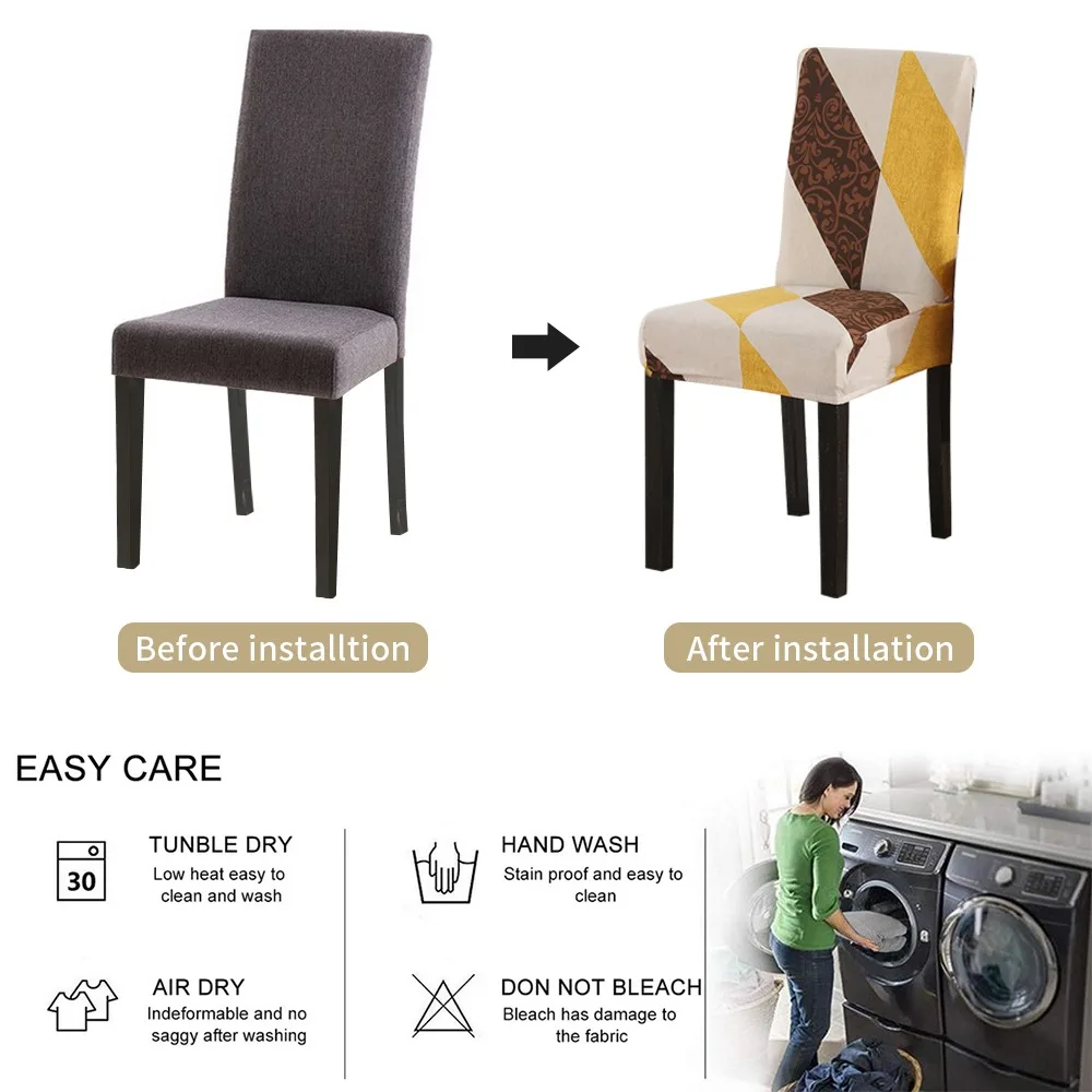 Особенности:Потрясающий Материал: изготовлен из высококачественной полиэфирной ткани, мягкий и удобный для сидения, не скатывается.Простая установка: легко установить крышку на стул из-за высокоэластичного материала. Также очень легко снять его со стула.Защита: толщина может защитить ваш стул от молочной пыли или царапин, прочный и долговечный.Обновление старого стула: если вы хотите обновить внешний вид стула, это будет идеальным выбором для стула, а также станет прекрасным украшением вашего дома, комнаты.Легкий уход: Машинная или ручная стирка.