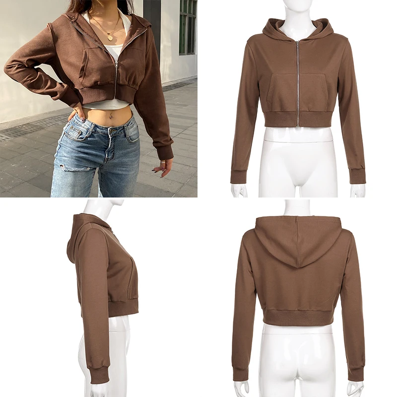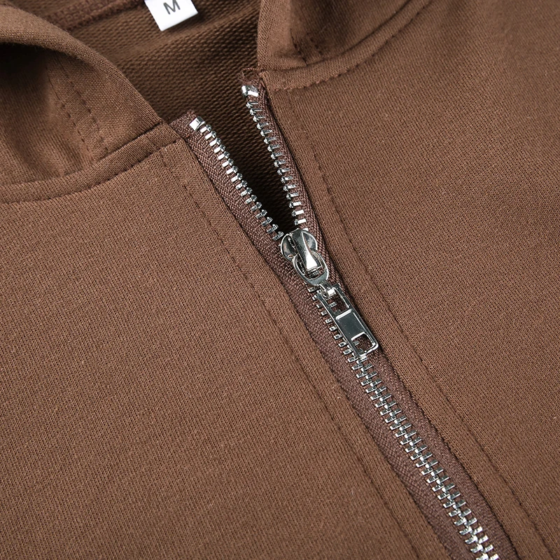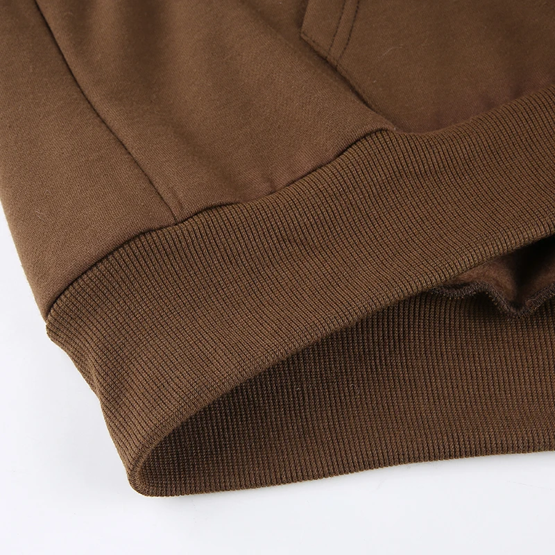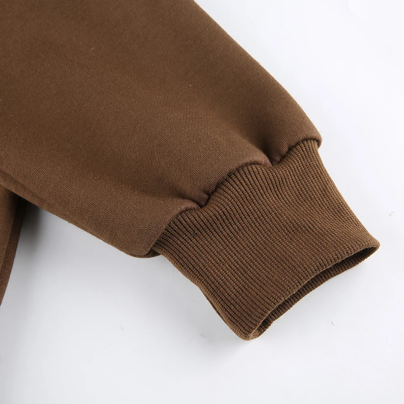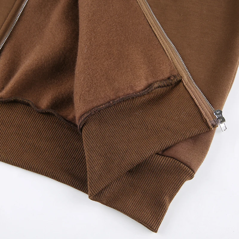 Толстовка Y2K, коричневая, зимняя, с капюшоном, на молнии, с карманами