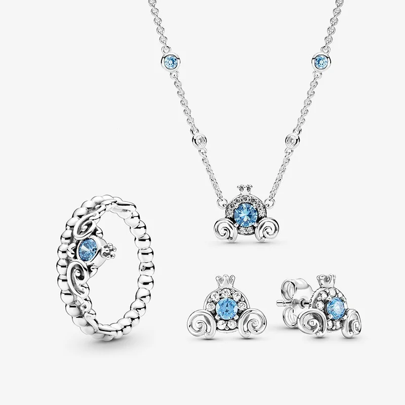 Набор ювелирных изделий из серебра 925 пробы, ожерелье и серьги в виде тыквы и автомобиля, в стиле Золушка, таинственное очарование для вечеринки девушки