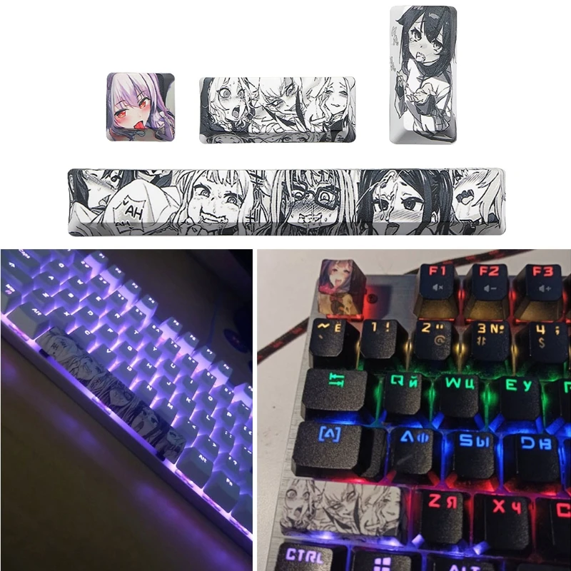 4 шт., колпачки для клавиш Ahegao с японским аниме PBT Space, 6.25U...