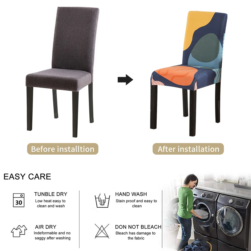 Особенности:Потрясающий Материал: изготовлен из высококачественной полиэфирной ткани, мягкий и удобный для сидения, не скатывается.Простая установка: легко установить крышку на стул из-за высокоэластичного материала. Также очень легко снять его со стула.Защита: толщина может защитить ваш стул от молочной пыли или царапин, прочный и долговечный.Обновление старого стула: если вы хотите обновить внешний вид стула, это будет идеальным выбором для стула, а также станет прекрасным украшением вашего дома, комнаты.Легкий уход: Машинная или ручная стирка.