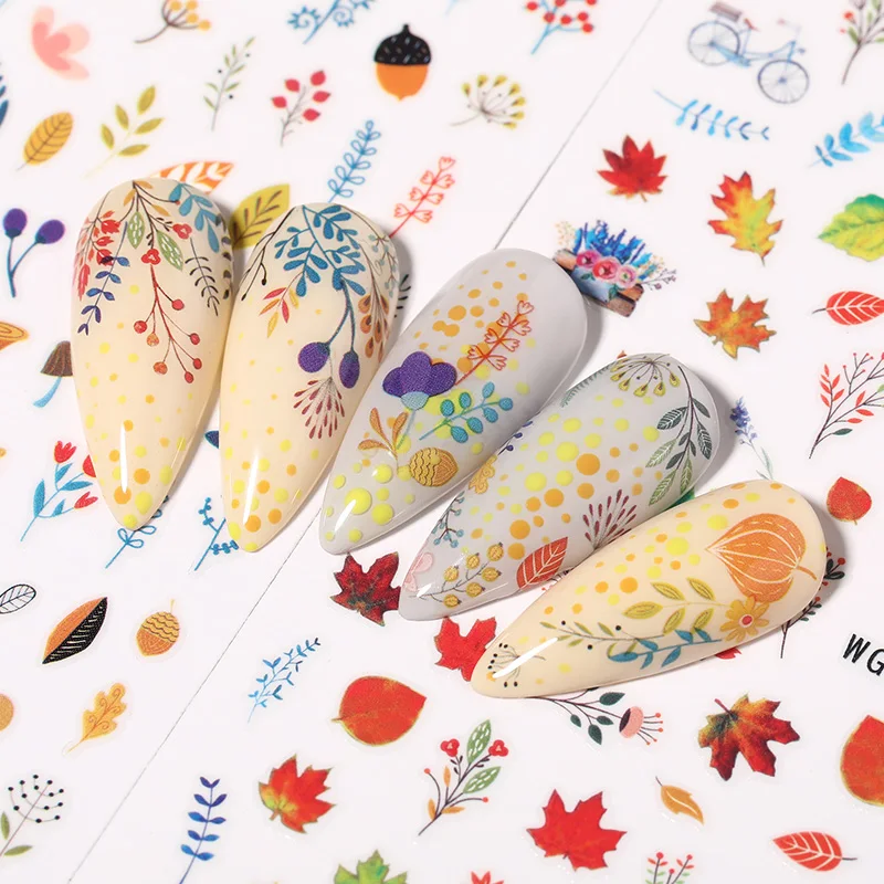 Переводные листья, кленовые листья, осень наклейки из фольги для ногтей, золотые цветы, листья, Переводные картинки, слайдер, художественное оформление ногтей, сделай сам, маникюр, 1 шт.