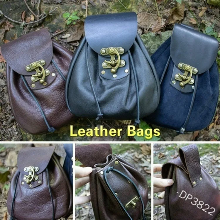 Кожаный кошелек на ремне для мужчин и женщин, средневековая сумочка...
