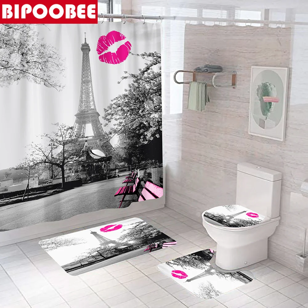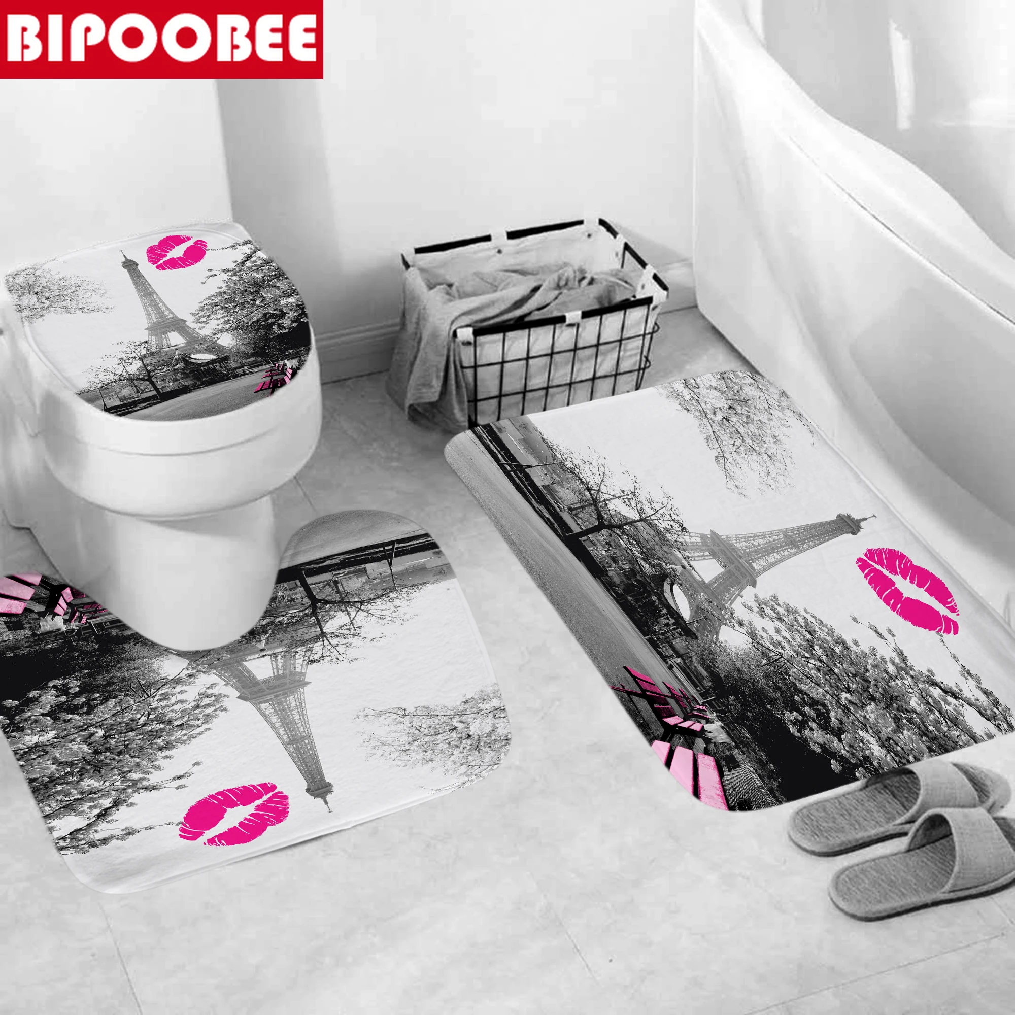 Занавеска для ванной комнаты, с принтом в виде Эйфелевой башни, 3d, современная, коврики для туалета, нескользящая, с крышкой, набор ковриков для ванной, домашний декор