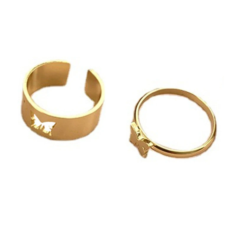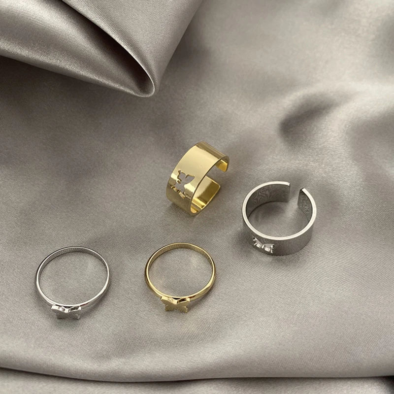 1 Пара регулируемых открывающихся колец с бабочкой для женщин и мужчин, унисекс, золотистого и серебристого цвета, металлические кольца, трендовые ювелирные кольца
